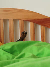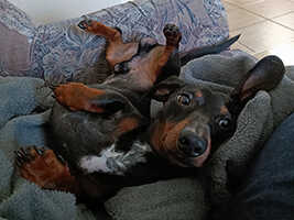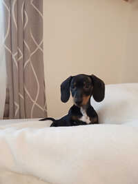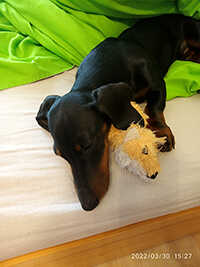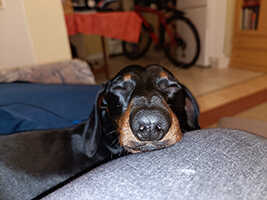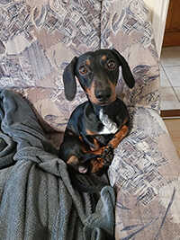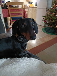I am a mini dachshund and my name is Bejgli, which means Poppy Seed Roll. This is a traditional Hungarian Christmas cake, made with walnuts or chestnuts or poppie seeds. This name had to be given to me, because I'm black like poppy seeds and I arrived in the house of my super new paw-rents at Christmas.